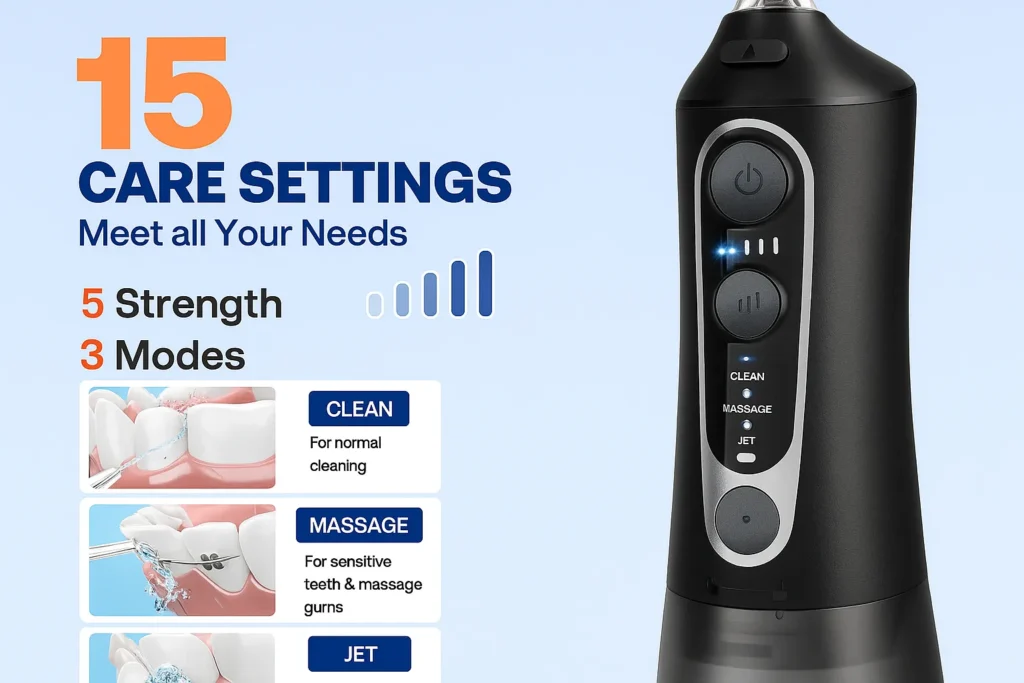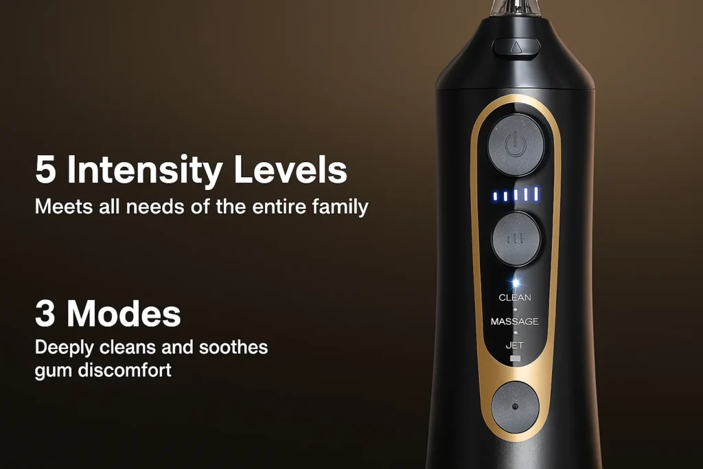 دارای 3 حالت شست شو و 5 حالت تنظیم فشار آب مناسب لثه حساس